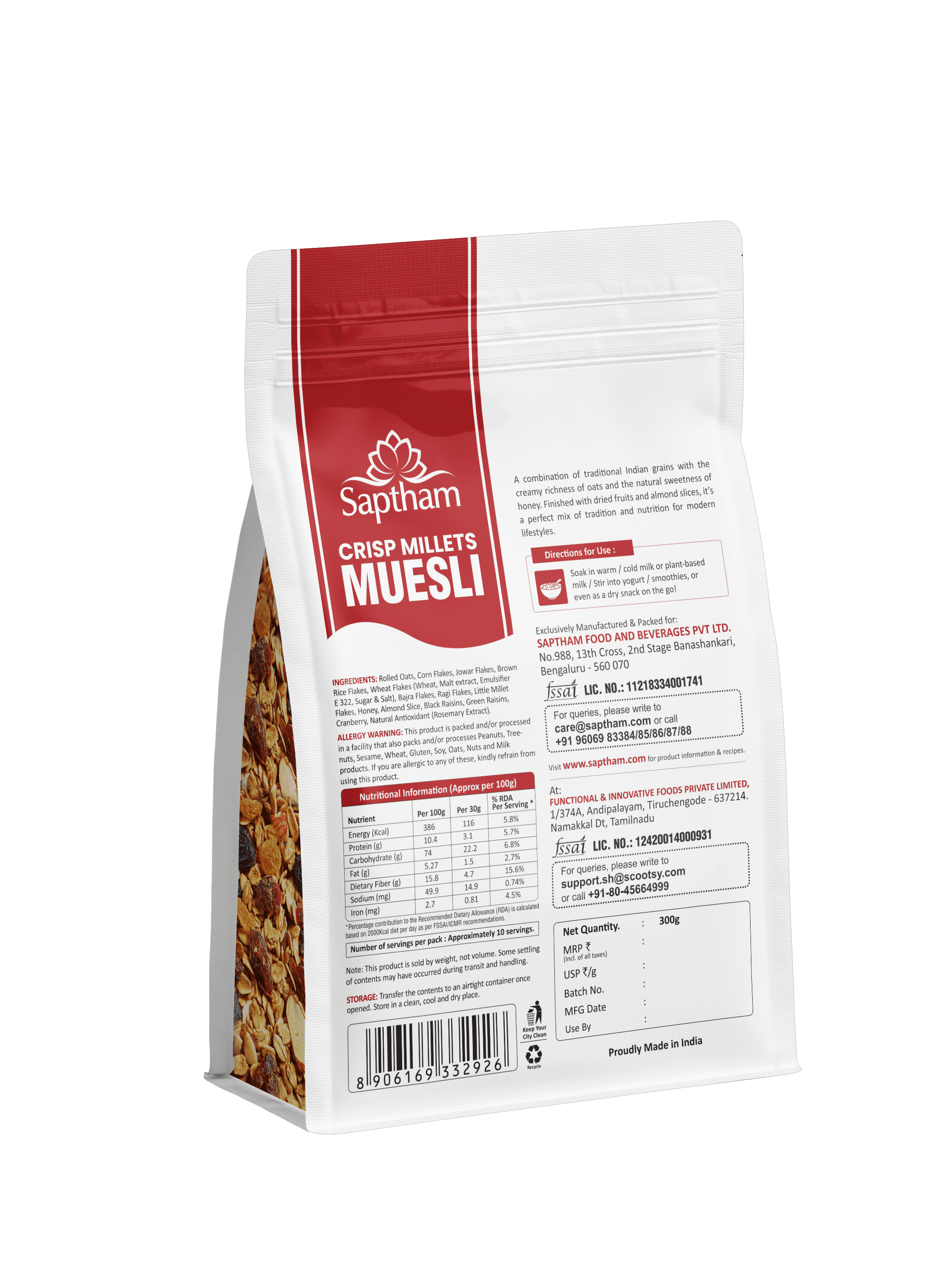 A combination of traditional Indian grains with the creamy richness of oats and the natural sweetness of honey. Finished with dried fruits and almond slices, it's a perfect mix of tradition and nutrition for modern lifestyle.