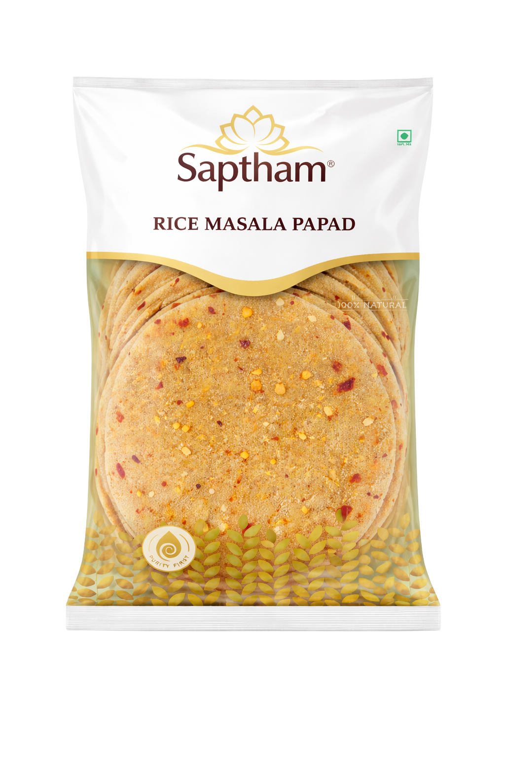 Authentic Rice Masala Papad, crafted without soda, using traditional methods and a blend of spices. Crunchy, flavorful, and perfect as a snack or meal accompanimen